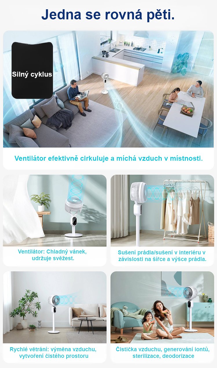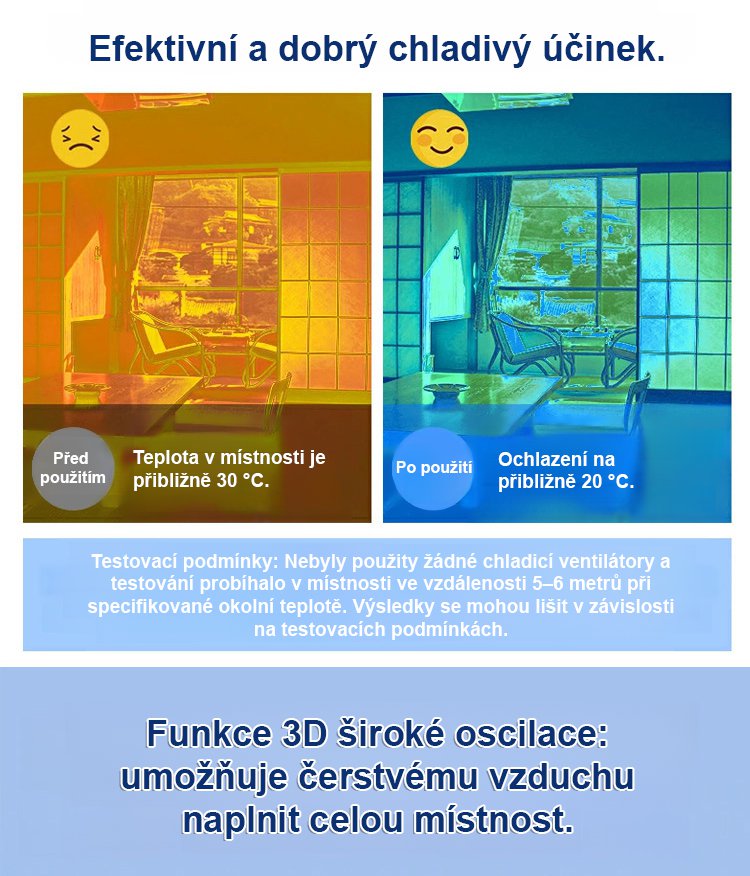 Inovativní konstrukce turbo shromažďování vzduchu umožňuje silnému proudění vzduchu proniknout do každého rohu místnosti, rychle vyrovnat teplotu v místnosti a rozloučit se s dusnou slepou uličkou!